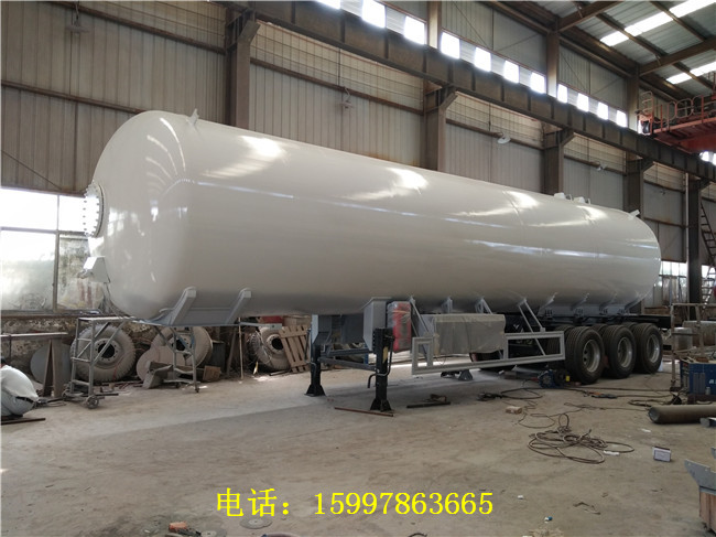 30噸液化氣半掛車設(shè)計(jì)壓力為1.61MPa,直徑2470mm,筒體和封頭厚度均為11.5mm,使用Q370R高強(qiáng)度材料制作,在半掛車各種型號中是容量較大的一款。