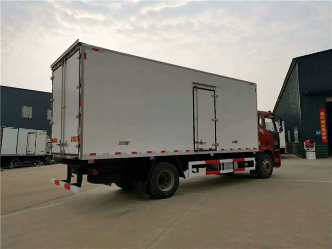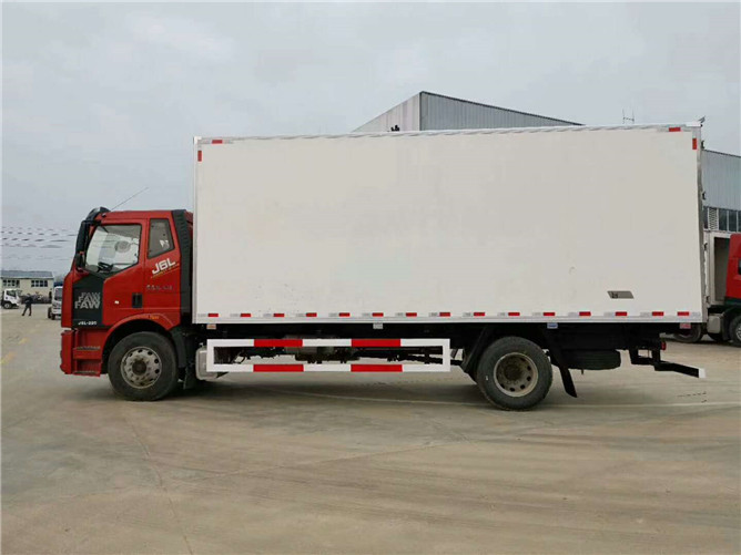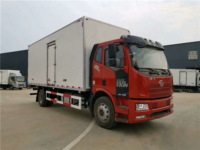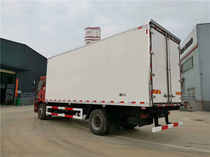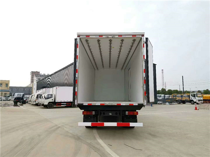 解放J6L冷藏車(chē)可配置平頂駕駛室,大柴220馬力發(fā)動(dòng)機(jī),主要用于肉質(zhì)品運(yùn)輸,整車(chē)尺寸:9200×2600×4000,箱體尺寸:6800×2410×2500,制冷機(jī)組有漢雪、華泰等各種品牌,此車(chē)額定質(zhì)量10噸左右,廣泛用于長(zhǎng)途冷藏食品運(yùn)輸,如河南是我國(guó)較大的一個(gè)生豬生產(chǎn)基地,很多大型冷藏車(chē)在這里穿梭,將新鮮的豬肉運(yùn)往全國(guó)各地。
