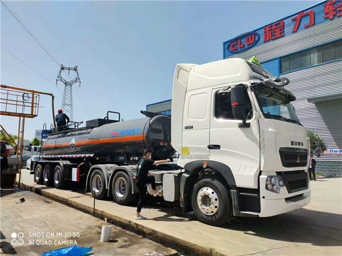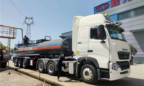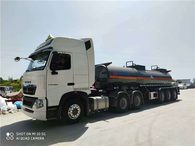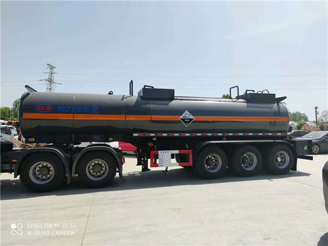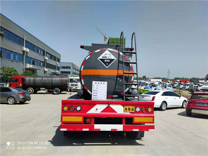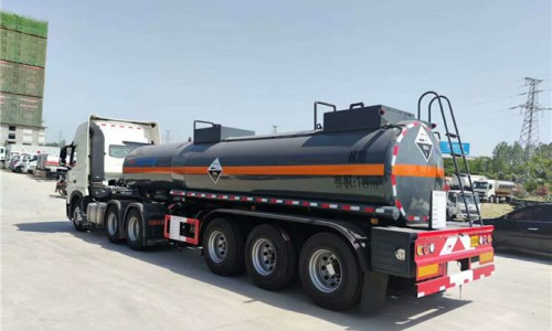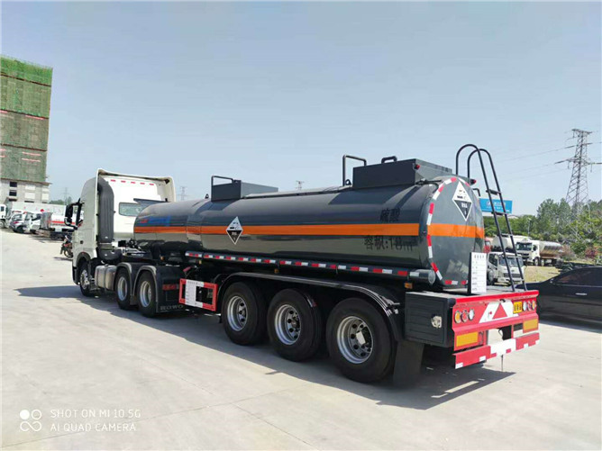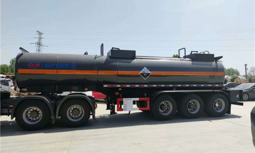 18立方硫酸半掛車采用Q235板材制作,4.2mm筒體,4.75封頭,襯塑16mm,兩個進(jìn)料口,后尾部左右自流配3寸PP球閥,鋁合金附件,12噸富華橋三軸帶盤式制動帶空懸,兩軸帶ABS,28噸支腿,一個工具箱,一個備胎架,1200真空胎(鋁合金鋼圈)