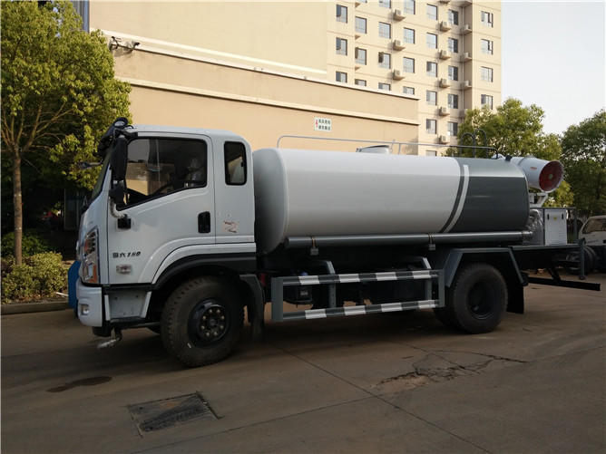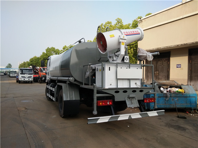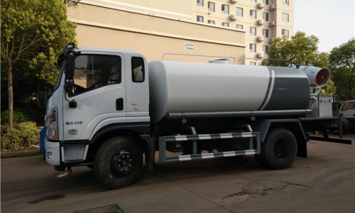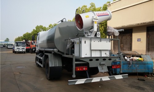 10立方東風(fēng)天錦抑塵車搭載康機(jī)180馬力發(fā)動機(jī),9.00R20輪胎,罐體形狀為圓罐。