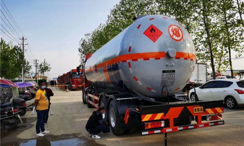 解放J6前四后八液化氣罐車,罐體容積37.2立方,罐體材質Q370R,搭載道依茨320馬力發(fā)動機,總質量32噸,空氣懸掛,鋁合金輪轂。