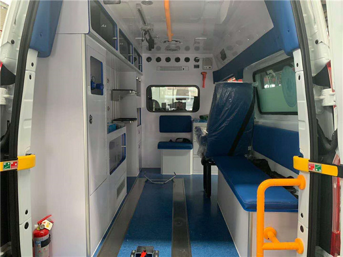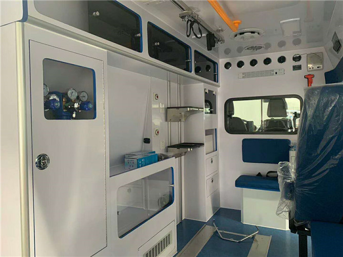 福特V362監(jiān)護(hù)救護(hù)車選裝美式警燈(星際控制器),全車發(fā)泡處理,醫(yī)療倉左側(cè)不封窗預(yù)埋處理,玻璃鋼+Pvc板復(fù)合內(nèi)飾頂,12cm耐酸堿阻燃板材柜體,1500W+600W智能逆變 ,全車監(jiān)控。