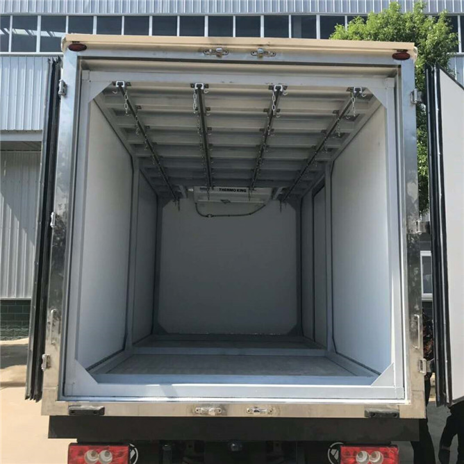 內(nèi)外優(yōu)質(zhì)玻璃鋼板,中間高密度保溫層,廂體厚度8CM,門(mén)鎖鉸鏈不銹鋼成型件,鋁合金型材包邊,地板鋁花紋板。