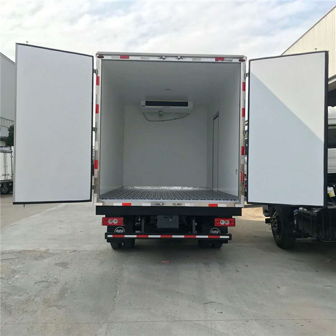(3)廂體配件:廂體周邊鋁合金包邊,不銹鋼包角,不銹鋼門鎖,不銹鋼門框及合頁,廂體內(nèi)節(jié)能LED照明燈。標配凱利制冷機組,采用進口冷王壓縮機,也可選裝華泰、韓亞、冰森、凱雪、開利、冷王等其他機組(整車3.7噸)超重500公斤。