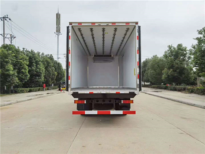 廂體配置:雙溫冷機(jī),箱體內(nèi)部裝5排導(dǎo)軌,底板加厚通風(fēng)槽,單側(cè)門,工具箱,冷機(jī)爬梯,其余標(biāo)配!