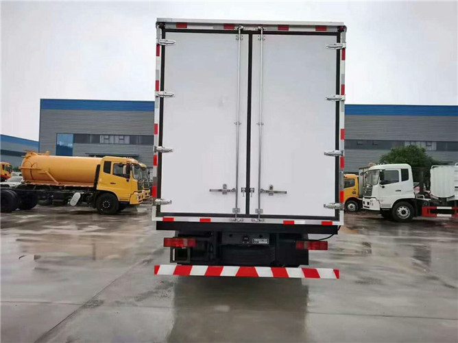 廂體內(nèi)外玻璃鋼、底板鋁花紋板、中間200px厚保溫層、不銹鋼門鎖件、后雙開門、保修手冊、隨車工具。