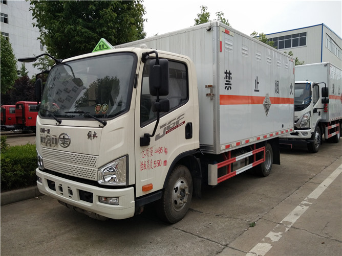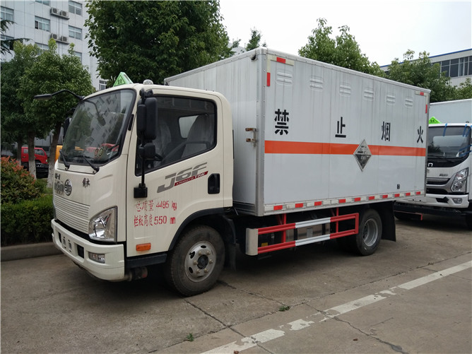 解放J6腐蝕性物品運輸車搭載濰柴130馬力發(fā)動機,上戶0.75噸,廂長4.2米,是款比較暢銷的危險品廂式車。
