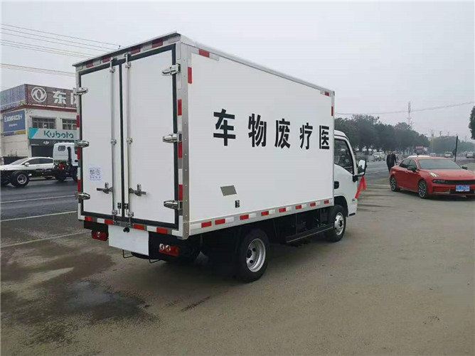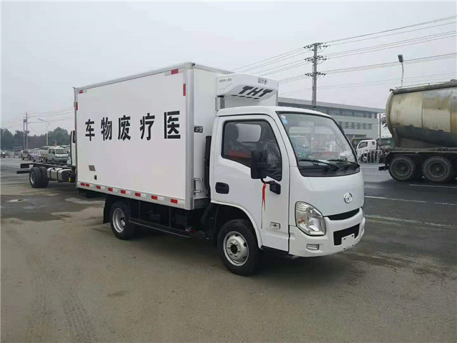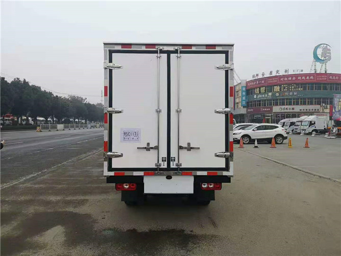 配置:廂體外玻璃鋼內(nèi)不銹鋼,中間充填高密度保溫材料(聚氨脂),車廂與大梁之間采用橡膠皮廂體下方圓弧處理,后門為雙層密閉結(jié)構(gòu),并用采迷宮式封條,使車廂完全封閉,廂內(nèi)安裝紫外線毒消燈,加裝自動消毒噴霧器。車廂內(nèi)配裝紫外線消毒殺菌設(shè)備,配零下五度制冷機組。