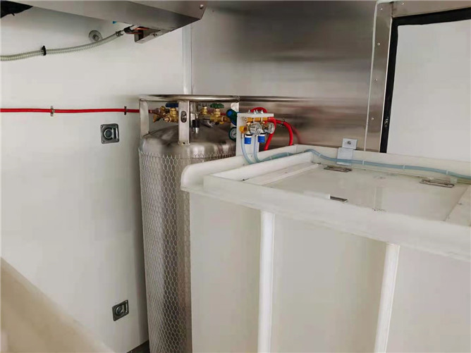 廂體配置:廂體內(nèi)外為玻璃鋼板,底側(cè)兩面為304不銹鋼材質(zhì),中間保溫材料為200px聚氨酯保溫板,箱體采用鋁合金型材包邊,包角,配雙開(kāi)后門(mén),不銹鋼門(mén)框、鎖件、鉸鏈,其余標(biāo)配。加裝鮮活魚(yú)箱及杜瓦罐。