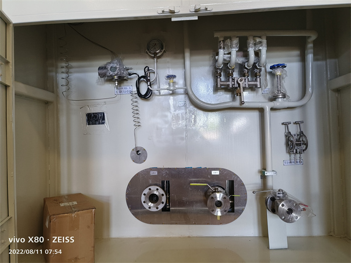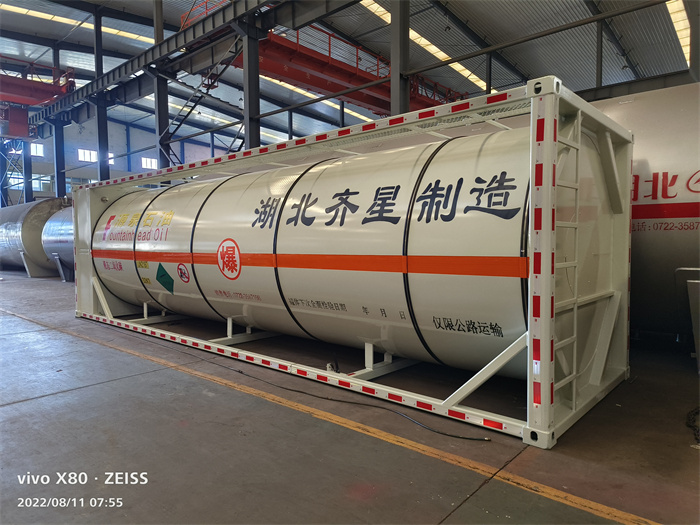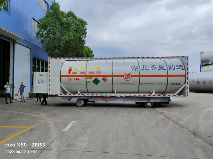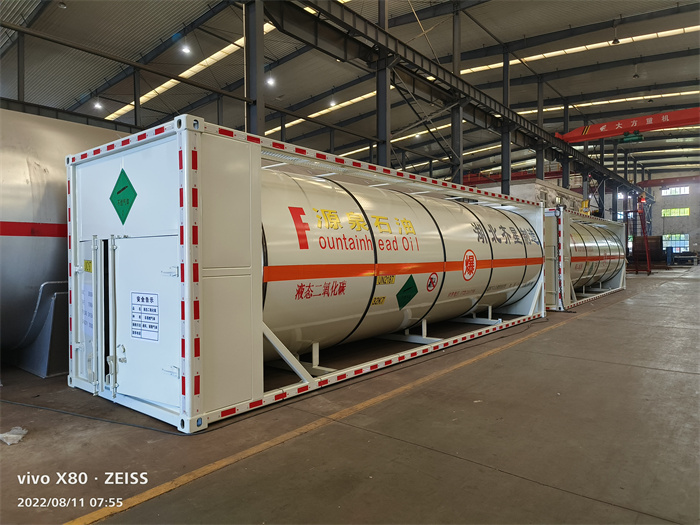 30英尺二氧化碳罐式集裝箱主要由框架、罐體及管路系統(tǒng)等組成,罐體外部采用聚氨脂保溫。筒體和封頭材料均經(jīng)過檢驗(yàn),且進(jìn)廠后還進(jìn)行