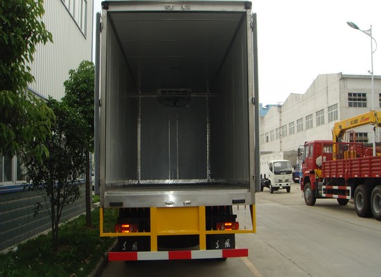 用戶使用需求可加裝駕駛室空調和方向助力。 廂板為三明治式結構,內外蒙皮,中間輕鋼龍骨架及8厘米高密度聚胺脂保溫材料,采用國際先 進的大型真空負壓機一次性負壓成型,表面光潔平整,強度高,整體質量輕,保溫性能良好,無滲漏。 廂體內外蒙皮可根據用戶的實際需求選 用玻璃鋼板,鋁合金板,彩鋼板,不銹鋼板等材質制作。用戶也可以根據運輸介質的不同選裝滑道,肉鉤,通風槽,側開門等。 客戶可以根據實 際用途,及運輸介質的不同選用制冷機組,我公司制冷機組全部選用國內外知名品牌,溫度可以達到零上 18度—零下 18度。全國聯保。 | |||