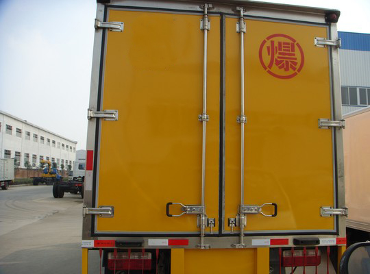 廂內(nèi)安裝固定運(yùn)載物的臥環(huán),防燃煙霧報(bào)警器,門上安裝防盜報(bào)警器,前置防撞防靜電膠皮。底部是防爆鋼板上墊防靜電膠皮,廂體頂部封閉不可開啟。