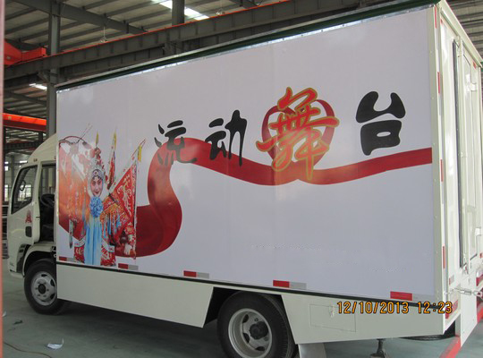 東風(fēng)福瑞 舞臺車簡介: 東風(fēng)福瑞卡舞臺車,選用東風(fēng)原廠福瑞卡底盤改裝,該車軸距為3300mm 選用朝柴四缸95匹馬力發(fā)動(dòng)機(jī) 。駕駛