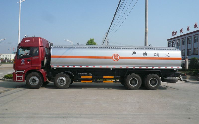 產(chǎn)品簡(jiǎn)述 | 福田前四后八運(yùn)油車采用原裝福田底盤(pán)生產(chǎn),康明斯315馬力發(fā)動(dòng)機(jī),10.00-20尼龍?zhí)?,采用Q235-5毫米板材生產(chǎn),罐體容積25.5立方米。 |
