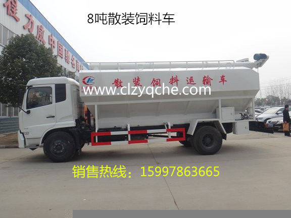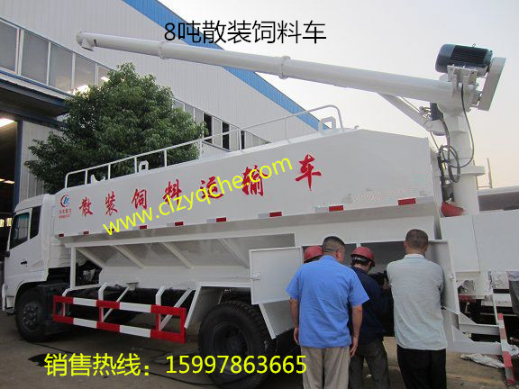 我公司研發(fā)生產的散裝飼料運輸車罐頂開有進料口.頂部的一根螺旋輸送卸料管(俗稱卸料絞龍)則可自由回轉和抬升,抬升的仰角可達60度。運輸時,頂部的螺旋管平臥在罐頂;卸料時則抬起,使管端的出料口與畜禽飼養(yǎng)場貯料罐頂部的進料門相接,駕駛室內裝有操縱裝置(操縱裝置也可裝置在罐體尾部),卸料時通過車底的動力輸出軸和減速器來驅動螺旋,以完成卸料。飼料車改裝配置:改裝配置:罐體采用武鋼高壓容積板制作,可以分成多個倉用于裝卸多種不同的飼料,電動絞龍式(三相電配套場所)。電動絞龍散裝飼料運輸車是針對不同客戶群最新研發(fā)的、滿足低端市場的新產品,該車不配車載發(fā)電機,電動絞龍利用市電三相380V來供電,車輪距較小能適應農村鄉(xiāng)間道路。