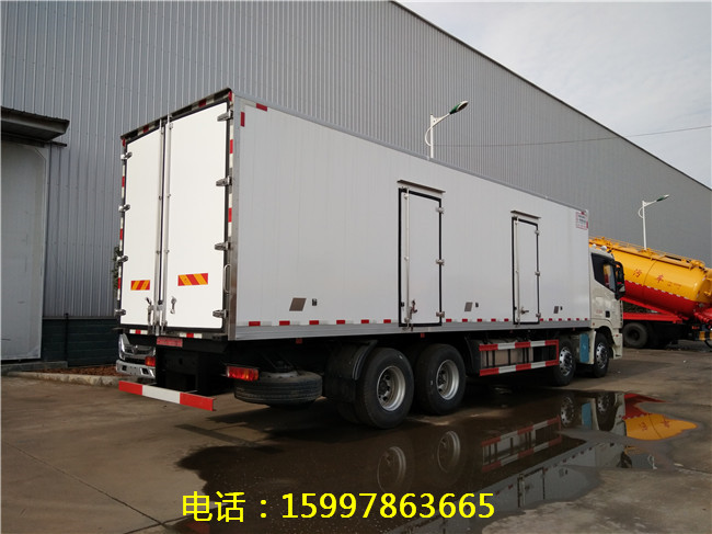 歐曼前四后八9.6米冷藏車在大型冷鏈運(yùn)輸中,一直比較受歡迎,此款車型運(yùn)輸能力較強(qiáng),動力實足,駕駛室設(shè)計也比較人性化,方便駕駛?cè)藛T在長途運(yùn)輸過程中操作、生活等。我們廠家可根據(jù)用戶要求設(shè)計成側(cè)面開門,或多個對開門,針對不同的保鮮食品量身定制。