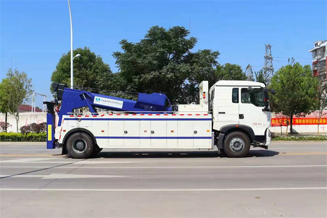 現(xiàn)如今無論是小型汽車還是大型的商用車市場保有量均呈上升趨勢(shì),隨之出現(xiàn)的交通事故也有所增加,因而清障車應(yīng)運(yùn)而生,尤其是一些流量較大的交通要塞,而一些大型的商用車更需要拖吊能力更強(qiáng)的大型清障車才能完成清障作業(yè),今天為大家推薦一款50噸重汽一拖一清障車。