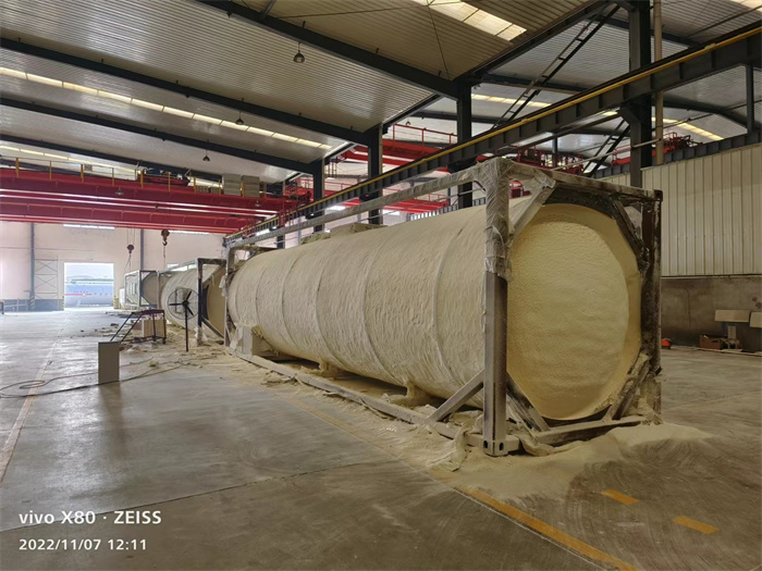11月上旬,我公司接的一批20英尺環(huán)氧乙烷罐式集裝箱訂單仍在加緊生產(chǎn)中,已接近尾聲,一些正在進(jìn)行發(fā)泡作業(yè)(見下圖),力爭按時交付客戶。
