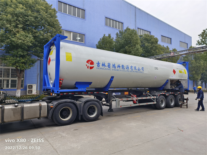 12月16日上午,兩臺(tái)經(jīng)過(guò)CCS認(rèn)證的40英尺LNG罐式集裝箱正在裝上半掛車(chē),準(zhǔn)備發(fā)往吉林一能源公司,也是我公司該月以來(lái)交付的第二批LNG罐式集裝箱產(chǎn)品。