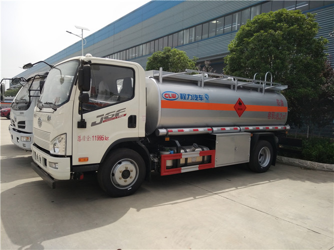 該款加油車采用解放底盤,配置單排駕駛室,濰柴160馬力發(fā)動機,多功能方向盤,150L鋁合金油箱,帶國產(chǎn)ABS,定速巡航,空調,后處理器前置,且裝有爆胎應急安全裝置,是危險品專用底盤。