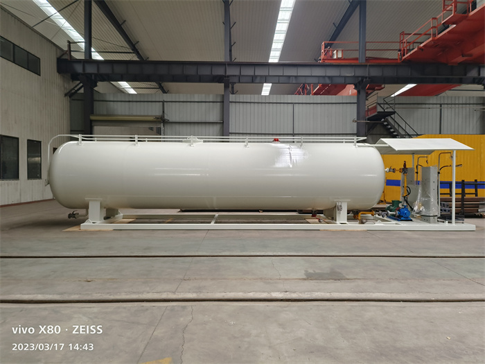 25立方液化氣撬裝站可以裝載10噸液化氣介質,根據(jù)需要可以加裝LPG加氣機或者兩套泵,安全附件如溫度計、壓力表等按標準安裝在罐體上。