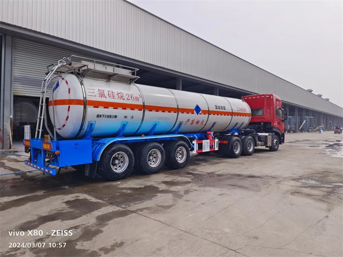 26立方不銹鋼三氯硅烷半掛車(chē)發(fā)車(chē)