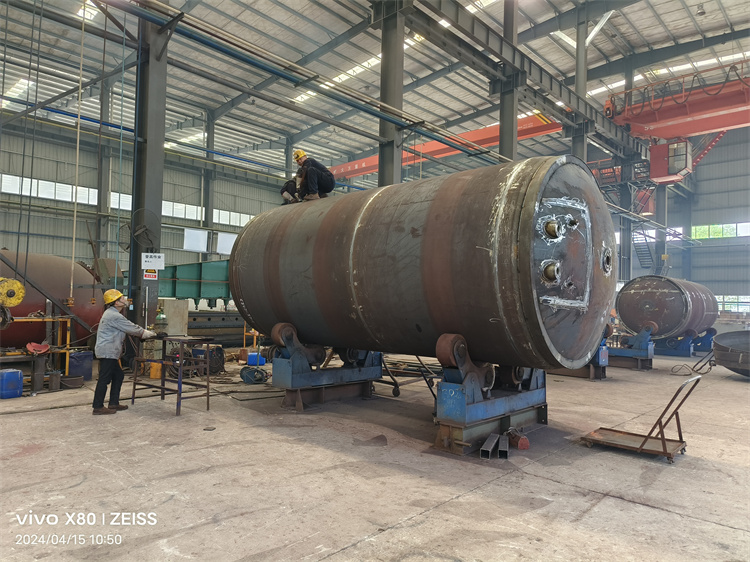 從圖片可以看出一個(gè)班組正在焊接罐體的外環(huán),而一個(gè)在罐體內(nèi)部焊接防浪板及液相、氣相凸緣鍛件。所有焊接均要通過(guò)無(wú)損檢測(cè)確保質(zhì)量100%過(guò)關(guān),且最后還要進(jìn)行水壓試驗(yàn),氣密性試驗(yàn)和氮?dú)庵脫Q,保障用戶使用安全。