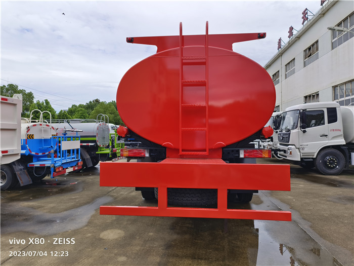 公告容積:21.8方,罐體實(shí)際有效容積22.5方,罐體采用高強(qiáng)度鋼材,全自動(dòng)焊工藝,封頭6MM(水壓封頭),罐體5.5-5.7MM,2倉2個(gè)快開式人孔,國(guó)標(biāo),卸料閥3寸2件,單倉帶泵進(jìn)泵出,2條PVC軟管,罐頂兩側(cè)活動(dòng)護(hù)欄(折疊),帶海底閥及歐標(biāo)罐口,兩根與罐體同長(zhǎng)出油管、兩個(gè)滅火器、一根爬梯、前封頭上端左右加裝一個(gè)導(dǎo)水管、帶靜電卷盤、后封頭上端左右各一個(gè)爆閃燈、帶安全告示。