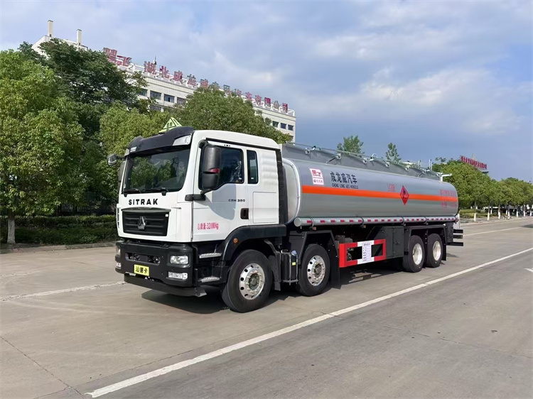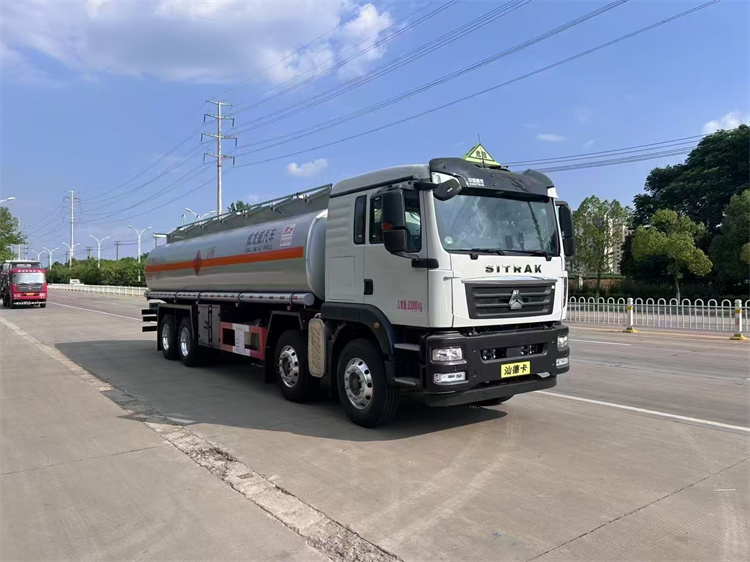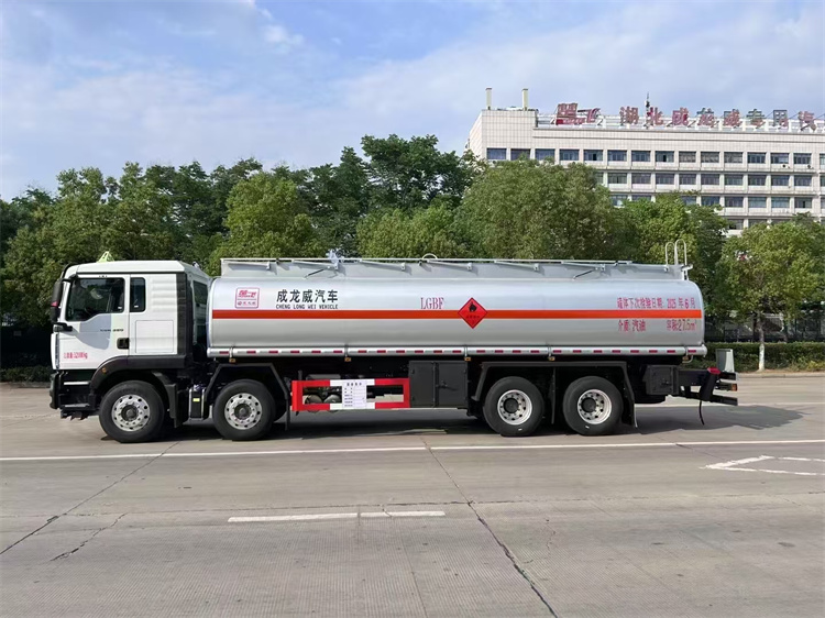 罐體配置:嚴(yán)格按照公告尺寸及外形圖片制作,公告容積27.5立方,罐體碳鋼板材,圓弧齒輪油泵(可泵進(jìn)泵出),單倉(可定制多倉),全套下裝油系統(tǒng)(含1個下裝卸油閥、1個油氣回收閥、1個油氣回收接口、1套氣動組合開關(guān)、1個防溢流探桿和1個插座),兩個歐標(biāo)罐蓋,一個海底閥,帶語音提示報警裝置,罐體兩側(cè)3M橙色反光帶、反光條,貼三個“易燃液體”標(biāo)識,安全告示牌,危險品牌、危險品三角燈,兩根輸油管,兩個滅火器,其它按標(biāo)準(zhǔn)配置制作。