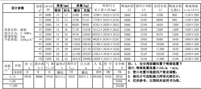 液氨儲罐按標準要求采用Q345R材質(zhì)生產(chǎn),結(jié)構(gòu)主要包括筒體、封頭、人孔,鞍座,接管法蘭等,產(chǎn)品由特檢院檢驗,合格后頒發(fā)合格證,出具全套圖紙、技術(shù)資料。根據(jù)客戶的需要,我公司制定一個液氨儲罐規(guī)格型號表,容積從10立方至100立方均可提供,方便您需要時選擇。