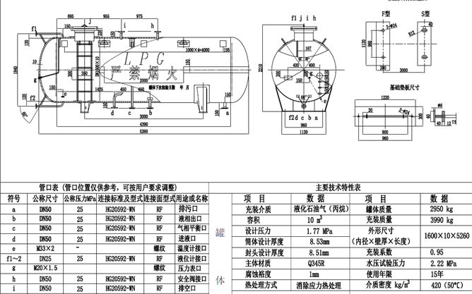10立方液化氣儲(chǔ)罐是一種比較大眾的規(guī)格,在氣站中經(jīng)常用到,通常設(shè)計(jì)成直徑1600mm,筒體10mm,封頭厚度也是10mm,臥式儲(chǔ)罐中間有一段圓形筒體,兩端是兩個(gè)橢圓形封頭,如此規(guī)則的形狀,可通過精確計(jì)算得知其液位高度與體積和質(zhì)量的對(duì)應(yīng)關(guān)系,以下為其液位換算表,希望能對(duì)用戶有所幫助。