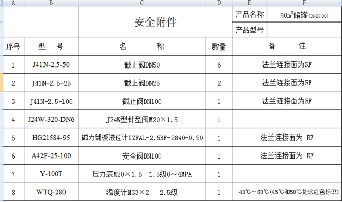 由清單可以看出,液氨儲罐安全附件跟罐體上的罐口是密切相關(guān)的,液相若改用DN80的,截止閥就會隨之改變,因此用戶朋友們在購買時一定要按照你的圖紙來,避免弄錯。