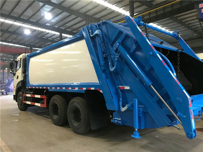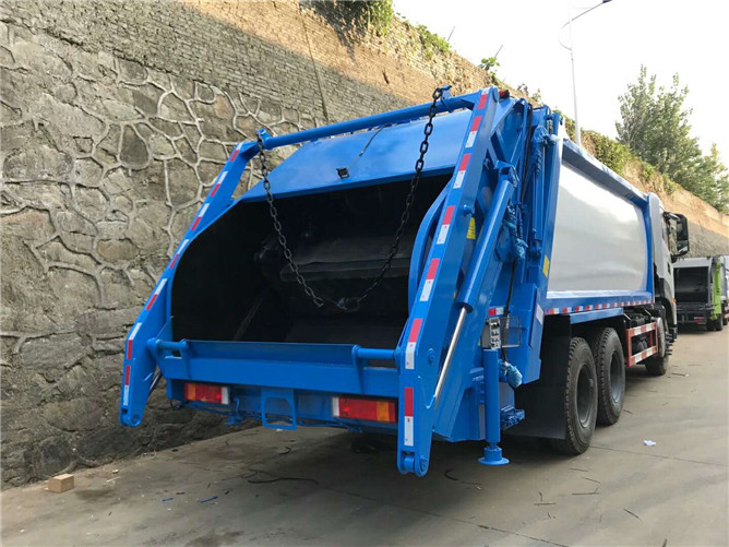 19立方東風(fēng)天龍壓縮式垃圾車搭載康機(jī)270馬力發(fā)動(dòng)機(jī),后翻轉(zhuǎn)帶擺臂,是壓縮式垃圾車中容量較大的車型。