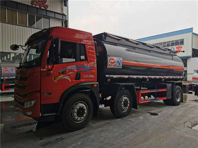 此款硝酸運輸車搭載解放220馬力柴油發(fā)動機,罐體采用304不銹鋼制作,筒體和封頭厚度均為5毫米,滿載可以運輸15噸10%濃度的硝酸介質(zhì)。