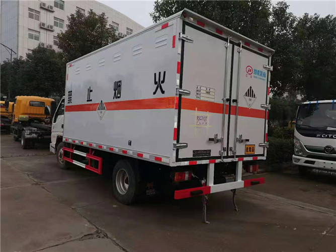此款危險(xiǎn)品廂式車搭載江鈴115馬力發(fā)動(dòng)機(jī),駕駛室是單排,可向前翻轉(zhuǎn),帶方向助力,五檔手動(dòng)變速箱,油剎,電動(dòng)車窗,中控遙控鎖,排氣管前置,前盤碟剎,帶爆胎應(yīng)急裝置,剎車襯片報(bào)警,前橋2噸,后橋3.5噸。