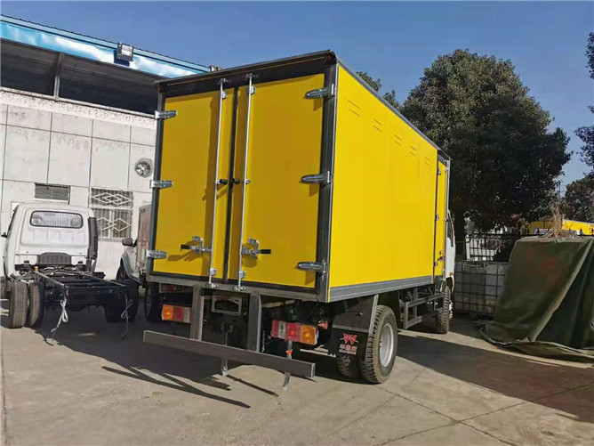 近日,我公司廂式車生產(chǎn)分廠承接一輛氣瓶運(yùn)輸車,出口至南非,此車為躍進(jìn)品牌,廂體按照國(guó)個(gè)用戶要求噴成通體黃色,不僅醒目,且相當(dāng)美觀。