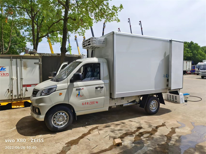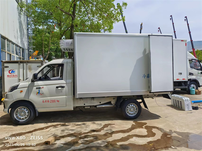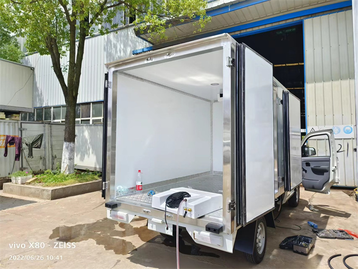 今天,兩臺(tái)福田祥菱V1冷藏車在裝完制冷機(jī)組后,準(zhǔn)備進(jìn)行最后的調(diào)試工作,即將下線。